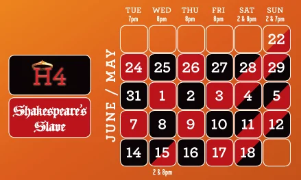 Production Team: Sarah B. Brown (Scenic Design/H4, Shakespeare’s Slave), Brenda Abbandandolo (Costume Design/H4), Mark Richard Caswell (Costume Design/, Shakespeare’s Slave), Joe Doran (Lighting Design/H4, Shakespeare’s Slave), David Hancock Turner (Sound Design/H4), Nick Moore (Sound Design/Shakespeare’s Slave), Johnathan Carr (Projection Design/H4), Kyle Bridwell (Props Design/H4, Shakespeare’s Slave – Asst.), Lauren Madden (Props Design/Shakespeare’s Slave), Dan Renkin (Fight Choreography/H4), Veronica Graveline (Production Stage Manager/H4), Sean McCain (Production Stage Manager/ Shakespeare’s Slave) Emily Hamburger (Assistant Stage Manager/H4, Shakespeare’s Slave), Lauren Madden (Assistant Props Design/H4), Deanna Luce (Wardrobe Supervisor/H4, Shakespeare’s Slave), Rebecca Zuber (Production Manager/H4, Shakespeare’s Slave), Vadim Ledvin (Master Electrician/H4, Shakespeare’s Slave), Joe Trentacosta/Springer Associates PR (Press Relations/H4, Shakespeare’s Slave)